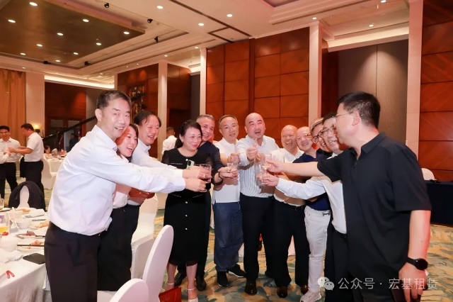 在董事长带领下,宏基租赁管理层代表齐聚舞台,共同举杯,向莅临现场的各位嘉宾致以诚挚的感谢。大家齐声高呼公司口号——“我用心,你放心”,将晚宴气氛瞬间点燃。在场嘉宾纷纷起身举杯回应,共同庆祝宏基租赁“三十而立”这一重要里程碑,气氛被推向最高潮。