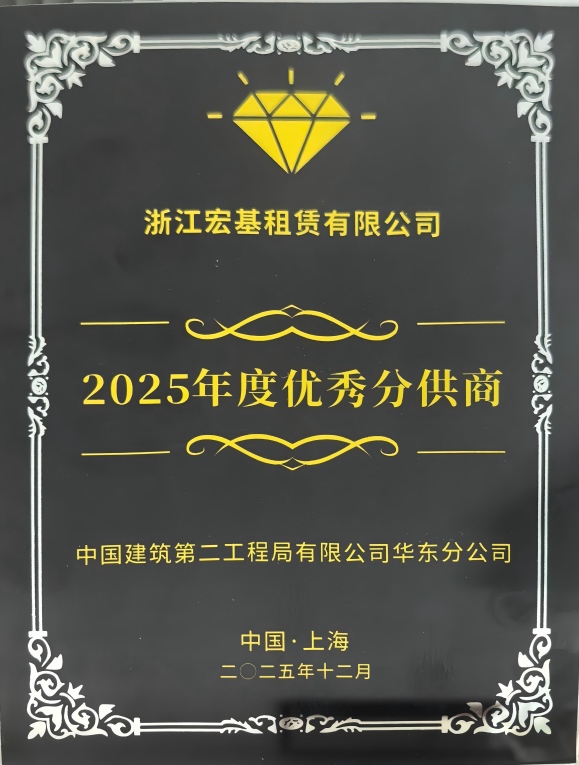 中建二局华东分公司“优质机械租赁商”颁发单位:中国建筑第二工程局有限公司华东分公司